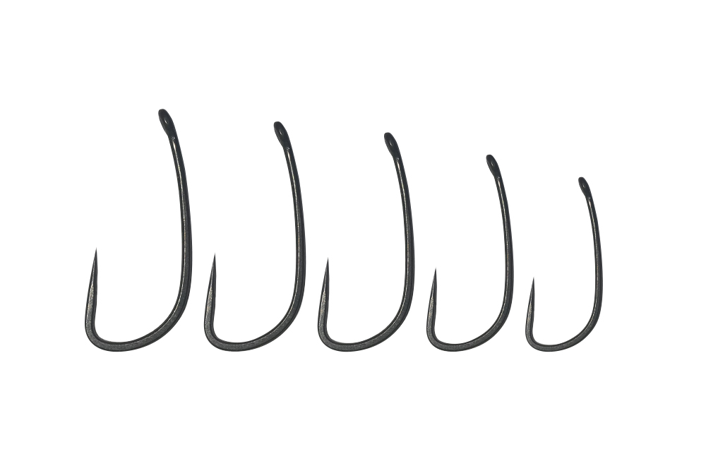 The relative proportions of a long subtly curved shank, 9° in-turned eye, wide gape and long hypodermic like point result in a hook pattern that is incredibly effective. On Ronnie rigs the hook point is in an aggressive poised position making it a very efficient hooker with superb hook holds and it is equally effective on bottom bait rigs, where the hook is very difficult to eject and turns and catches hold securely even without the aid of a line aligner or ‘kicker’.